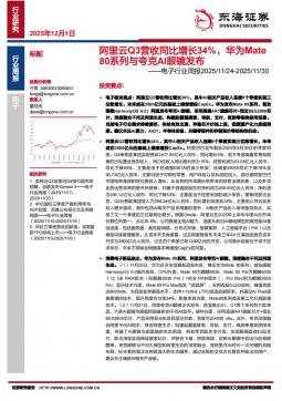 [半导体]2025-12-01-东海证券-电子行业周报:阿里云Q3营收同比增长34%,华为Mate80系列与夸克AI眼镜发布-14页(银创产业通www.chanyetong.net)