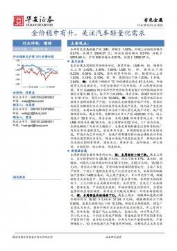 [金属]2023-11-19-华安证券-有色金属行业周报:金价稳中有升,关注汽车轻量化需求-15页(银创产业通www.chanyetong.net)