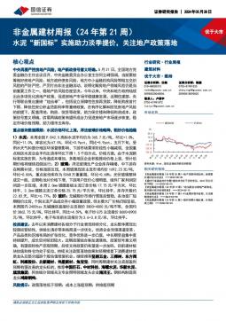 [无机材料]2024-05-28-国信证券-非金属建材周报(24年第21周):水泥“新国标”实施助力淡季提价,关注地产政策落地-18页(银创产业通www.chanyetong.net)
