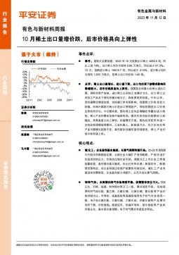 [金属]2023-11-13-平安证券-有色与新材料周报:10月稀土出口量增价跌,后市价格具向上弹性-15页(银创产业通www.chanyetong.net)