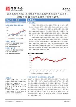 [化工]2025-12-25-华安证券-合成生物学周报:工信部发布首批生物制造标志性产品名单,2025年前11月生物基材料行业增长29%-18页(银创产业通www.chanyetong.net)