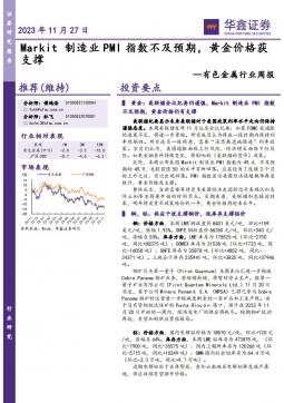 [金属]2023-11-27-华鑫证券-有色金属行业周报:Markit制造业PMI指数不及预期,黄金价格获支撑-16页(银创产业通www.chanyetong.net)