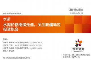 [无机材料]2023-05-22-天风证券-水泥行业研究周报:水泥价格继续走低,关注新疆地区投资机会-22页(银创产业通www.chanyetong.net)