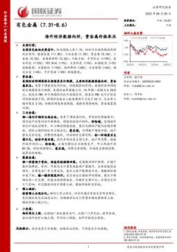 [金属]2023-08-06-国联证券-有色金属行业周报:海外经济数据向好,贵金属价格承压-18页(银创产业通www.chanyetong.net)