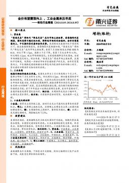 [金属]2024-08-22-甬兴证券-有色行业周报:金价有望震荡向上,工业金属承压寻底-18页(银创产业通www.chanyetong.net)