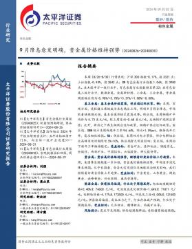 [金属]2024-09-03-太平洋-有色金属行业周报:9月降息愈发明确,贵金属价格维持强势-20页(银创产业通www.chanyetong.net)