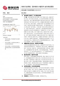 [金属]2024-09-03-首创证券-有色行业周报:国内铜价小幅回升,金价高位震荡-19页(银创产业通www.chanyetong.net)