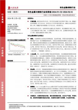 [金属]2024-02-04-东莞证券-有色金属与钢铁行业双周报:美国1月非农数据超预期,黄金价格或将承压-15页(银创产业通www.chanyetong.net)