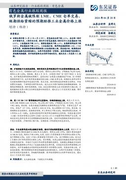 [金属]2024-04-20-东吴证券-有色金属行业跟踪周报:俄罗斯金属被限制LME、CME仓单交易,短期供给紧缩的预期助推工业金属价格上涨-19页(银创产业通www.chanyetong.net)