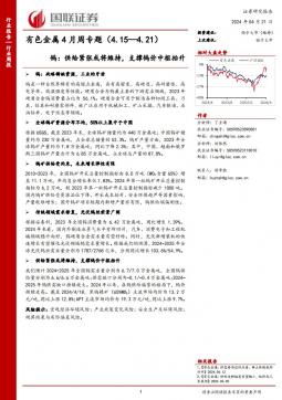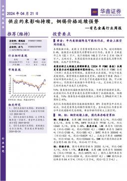 [金属]2024-04-21-华鑫证券-有色金属行业周报:供应约束影响持续,铜锡价格延续强势-19页(银创产业通www.chanyetong.net)