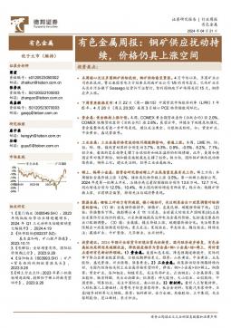 [金属]2024-04-22-德邦证券-有色金属行业周报:铜矿供应扰动持续,价格仍具上涨空间-26页(银创产业通www.chanyetong.net)
