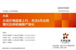 [无机材料]2022-08-29-天风证券-水泥行业研究周报:水泥价格延续上行,关注9月出货情况及供给端限产变化-21页(银创产业通www.chanyetong.net)