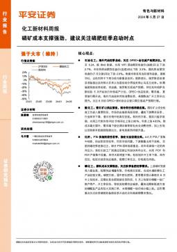 [金属]2024-05-27-平安证券-化工新材料行业周报:磷矿成本支撑强劲,建议关注磷肥旺季启动时点-15页(银创产业通www.chanyetong.net)