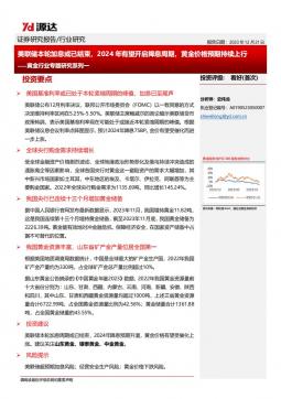 [金属]2023-12-21-源达信息-黄金行业专题研究系列一:美联储本轮加息或已结束,2024年有望开启降息周期,黄金价格预期持续上行-10页(银创产业通www.chanyetong.net)