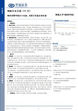 [金属]2023-12-22-华福证券-钢铁行业月报(11月):钢材消费回落出口走强,政策引导基本面改善-12页(银创产业通www.chanyetong.net)