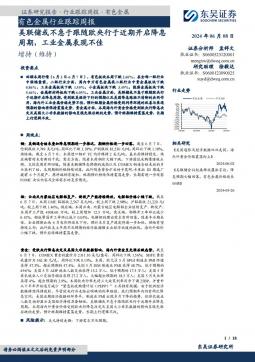 [金属]2024-06-09-东吴证券-有色金属行业跟踪周报:美联储或不急于跟随欧央行于近期开启降息周期,工业金属表现不佳-18页(银创产业通www.chanyetong.net)