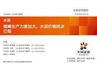 [无机材料]2022-08-01-天风证券-水泥行业研究周报:错峰生产力度加大,水泥价格拐点已现-21页(银创产业通www.chanyetong.net)