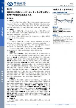 [金属]2024-10-23-华福证券-钢铁行业月报(2024.09):钢材出口和消费双提升,新增专项债发行进度超9成-17页(银创产业通www.chanyetong.net)