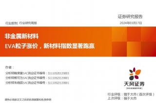 [新材料]2024-03-18-天风证券-非金属新材料行业研究周报:EVA粒子涨价,新材料指数显著跑赢-24页(银创产业通www.chanyetong.net)(银创产业通www.chanyetong.net)