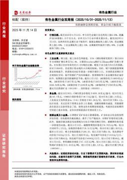 [有色金属]2025-11-11-东吴证券-有色金属行业跟踪周报:中美制造业数据均不及预期,工业金属价格震荡偏弱-18页(银创产业通www.chanyetong.net)