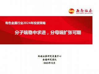 [金属]2023-12-07-西南证券-有色金属行业2024年投资策略:分子端稳中求进,分母端扩张可期-70页(银创产业通www.chanyetong.net)
