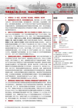 [前沿新材料]2023-07-24-民生证券-机械一周解一惑系列:苹果荣耀入局3D打印,有望启动产业新引擎-24页(银创产业通www.chanyetong.net)