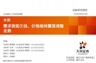 [无机材料]2022-09-19-天风证券-水泥行业研究周报:需求表现欠佳,价格维持震荡调整走势-22页(银创产业通www.chanyetong.net)