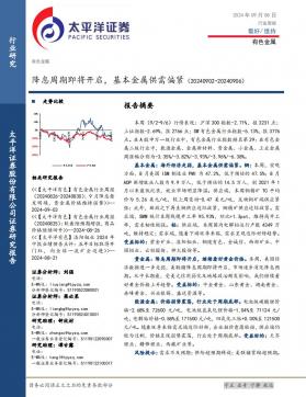 [金属]2024-09-10-太平洋-有色金属行业周报:降息周期即将开启,基本金属供需偏紧-20页(银创产业通www.chanyetong.net)