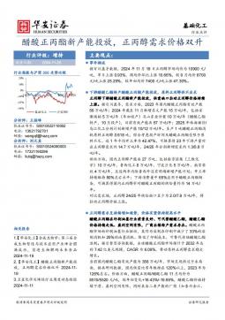 [化工]2024-11-19-华安证券-基础化工:醋酸正丙酯新产能投放,正丙醇需求价格双升-3页(银创产业通www.chanyetong.net)