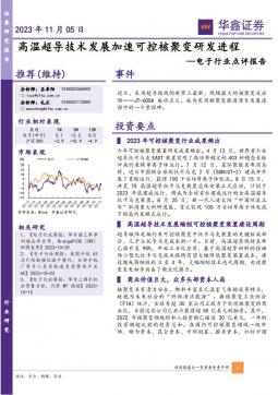 [前沿新材料]2023-11-05-华鑫证券-电子行业点评报告:高温超导技术发展加速可控核聚变研发进程-4页(银创产业通www.chanyetong.net)