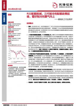 [化工]2024-09-19-东海证券-基础化工行业简评:R22配额削减,三代制冷剂配额政策延续,看好制冷剂景气向上-4页(银创产业通www.chanyetong.net)