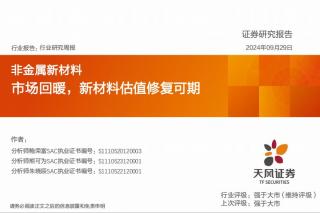 [新材料]2024-09-29-天风证券-非金属新材料行业研究周报:市场回暖,新材料估值修复可期-22页(银创产业通www.chanyetong.net)(银创产业通www.chanyetong.net)