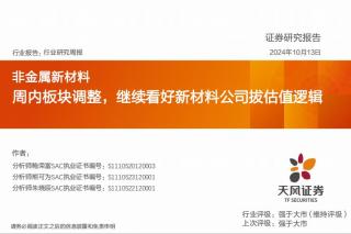 [新材料]2024-10-14-天风证券-非金属新材料行业研究周报:周内板块调整,继续看好新材料公司拔估值逻辑-21页(银创产业通www.chanyetong.net)(银创产业通www.chanyetong.net)