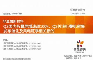 [新材料]2024-07-28-天风证券-非金属新材料行业研究周报:Q2国内折叠屏增速超100%,Q3关注折叠机密集发布催化及风电旺季相关标的-23页(银创产业通www.chanyetong.net)