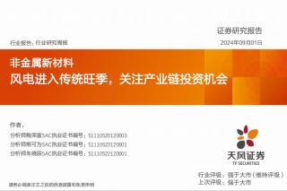 [新材料]2024-09-01-天风证券-非金属新材料行业研究周报:风电进入传统旺季,关注产业链投资机会-21页(银创产业通www.chanyetong.net)(银创产业通www.chanyetong.net)
