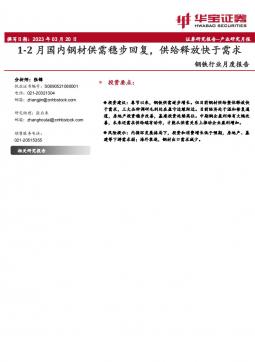 [金属]2023-03-21-华宝证券-钢铁行业月度报告:1-2月国内钢材供需稳步回复,供给释放快于需求-13页(银创产业通www.chanyetong.net)