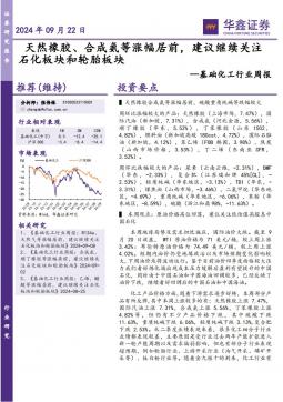 [高分子]2024-09-23-华鑫证券-基础化工行业周报:天然橡胶、合成氨等涨幅居前,建议继续关注石化板块和轮胎板块-30页(银创产业通www.chanyetong.net)(银创产业通www.chanyetong.net)