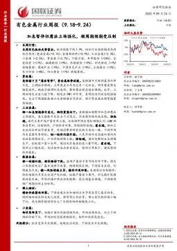 [金属]2023-09-24-国联证券-有色金属行业周报:加息暂停但鹰派立场强化,顺周期预期受压制-18页(银创产业通www.chanyetong.net)