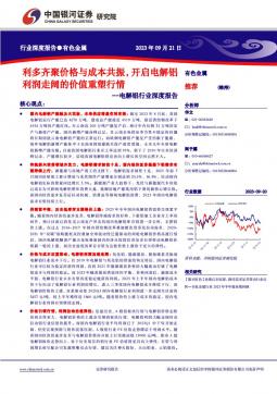 [金属]2023-09-23-中国银河-电解铝行业深度报告:利多齐聚价格与成本共振,开启电解铝利润走阔的价值重塑行情-28页(银创产业通www.chanyetong.net)