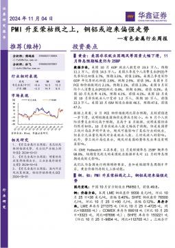 [金属]2024-11-04-华鑫证券-有色金属行业周报:PMI升至荣枯线之上,铜铝或迎来偏强走势-18页(银创产业通www.chanyetong.net)