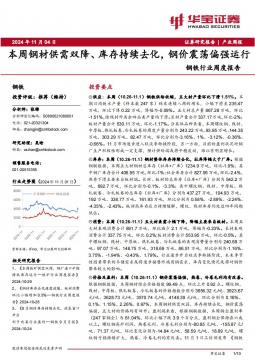 [金属]2024-11-04-华宝证券-钢铁行业周度报告:本周钢材供需双降、库存持续去化,钢价震荡偏强运行-10页(银创产业通www.chanyetong.net)