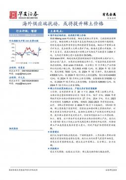 [金属]2024-11-04-华安证券-有色金属:海外供应端扰动,或将提升稀土价格-2页(银创产业通www.chanyetong.net)