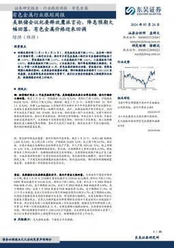 [金属]2024-05-26-东吴证券-有色金属行业跟踪周报:美联储会议纪要释放鹰派言论,降息预期大幅回落,有色金属价格迎来回调-18页(银创产业通www.chanyetong.net)