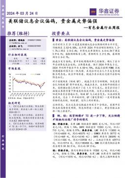 [金属]2024-03-24-华安证券-有色金属行业周报:美联储鸽派表态,金价延续强势-14页(银创产业通www.chanyetong.net)