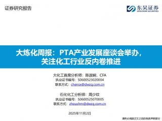 [石油化工]2025-11-02-东吴证券-大炼化周报:PTA产业发展座谈会举办,关注化工行业反内卷推进-34页(银创产业通www.chanyetong.net)