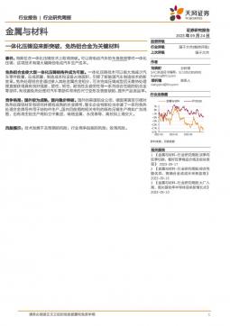 [金属]2023-09-25-天风证券-金属与材料行业研究周报:一体化压铸迎来新突破,免热铝合金为关键材料-4页(银创产业通www.chanyetong.net)