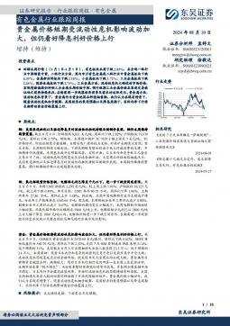[金属]2024-08-11-东吴证券-有色金属行业跟踪周报:贵金属价格短期受流动性危机影响波动加大,但仍看好降息利好价格上行-18页(银创产业通www.chanyetong.net)