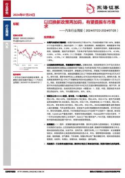 [汽车零部件]2024-07-29-东海证券-汽车行业周报:以旧换新政策再加码,有望提振车市需求-11页(银创产业通www.chanyetong.net)(银创产业通www.chanyetong.net)