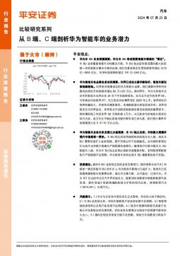[汽车零部件]2024-07-23-平安证券-汽车行业深度报告:比较研究系列-从B端、C端剖析华为智能车的业务潜力-27页(银创产业通www.chanyetong.net)(银创产业通www.chanyetong.net)
