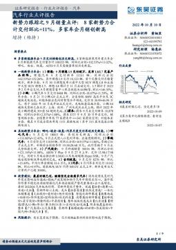 [汽车零部件]2022-10-10-东吴证券-汽车行业点评报告:新势力跟踪之9月销量点评:8家新势力合计交付环比+11%,多家车企月销创新高-9页(银创产业通www.chanyetong.net)
